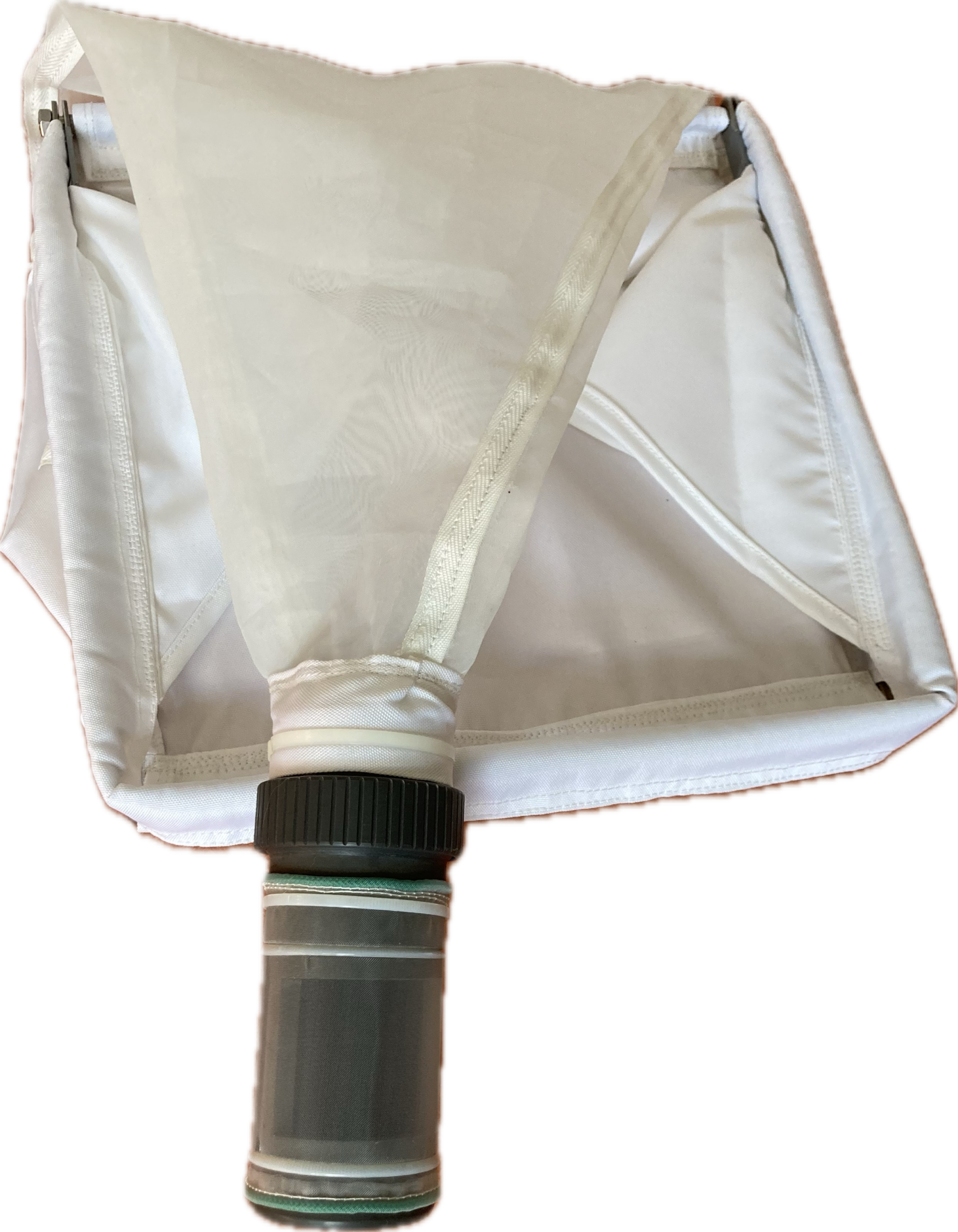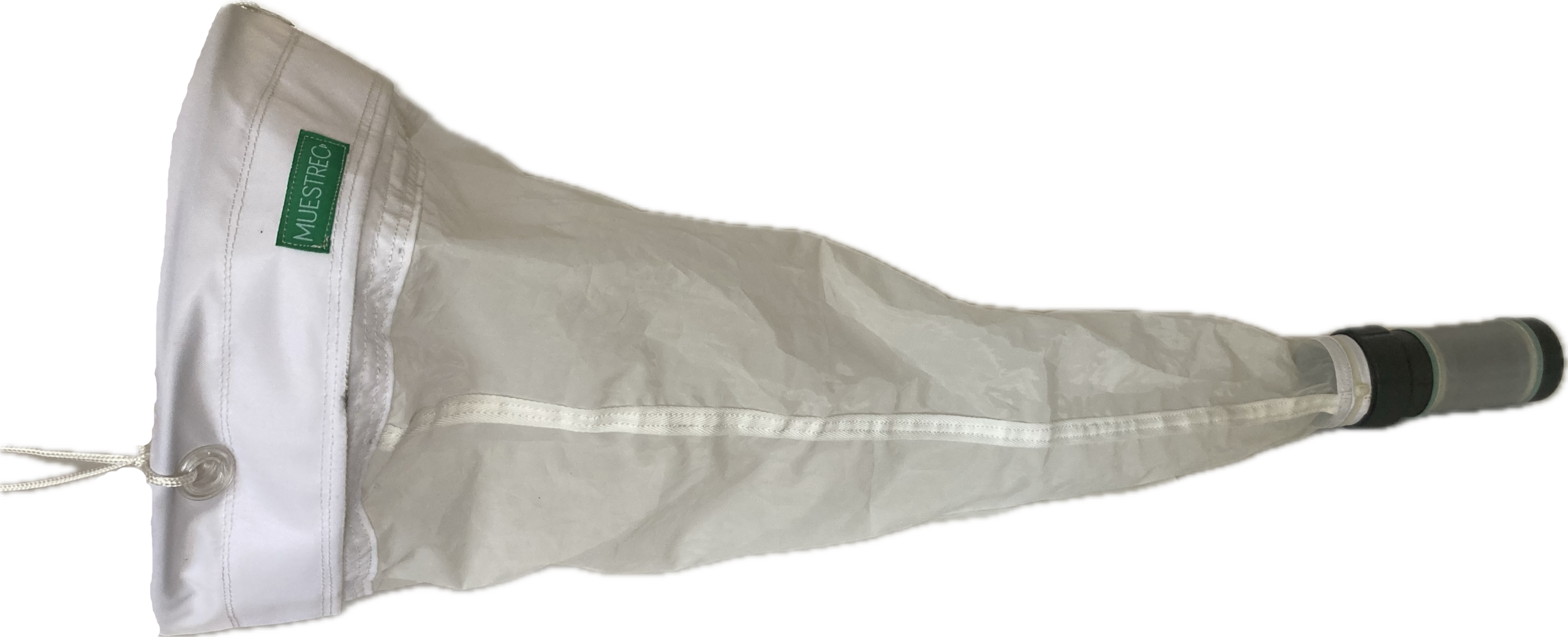 Red de plancton para lances verticales, oblicuos y horizontales de diferentes medidas y micras, confeccionadas en malla de nylon reforzadas en tela de muselina pesada, aro de acero inoxidable. Porta muestra o copos de distintas micras.